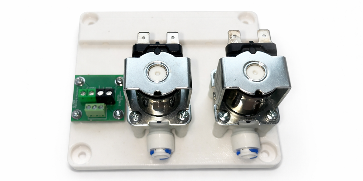 I have developed mounting plates for these osmosis valves. One for 4 valves and one for 2 valves. The drilling pattern for the valves I use is 25x25mm (most osmosis valves offered on AliExpress should have this; however, this must be checked).