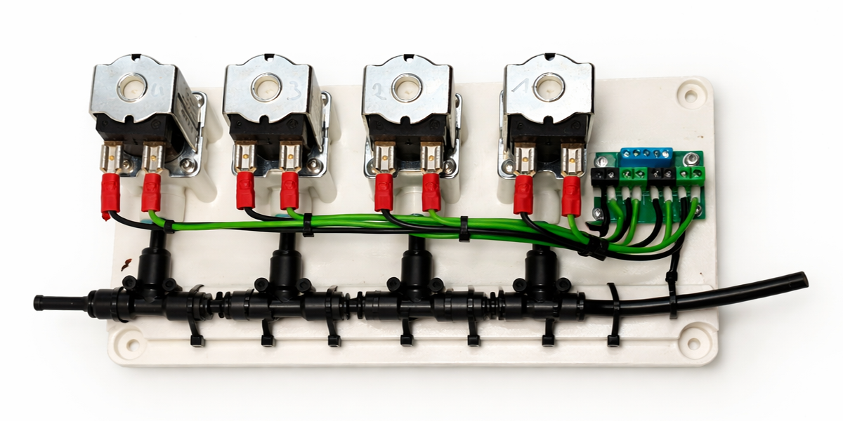 In order to control different spray circuits with a pump, we need valves that direct the pumped and pressurised water into the respective spray circuits. RainCo 3.0 can control up to 6 valves, enabling 6 spray circuits to be implemented.There are many different suitable valves available from numerous manufacturers! Among others, you can also take a look at MSR - Micro Rain Systems.
